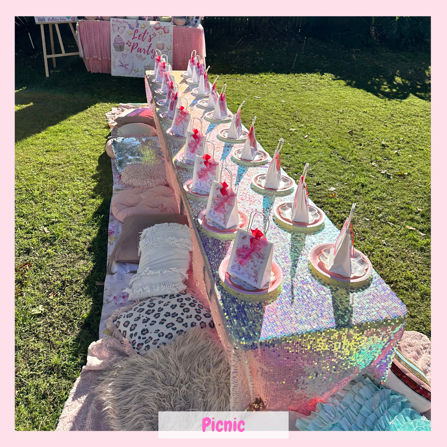 Our picnic and high tea include a table & pillows or table & chairs for the children to sit at