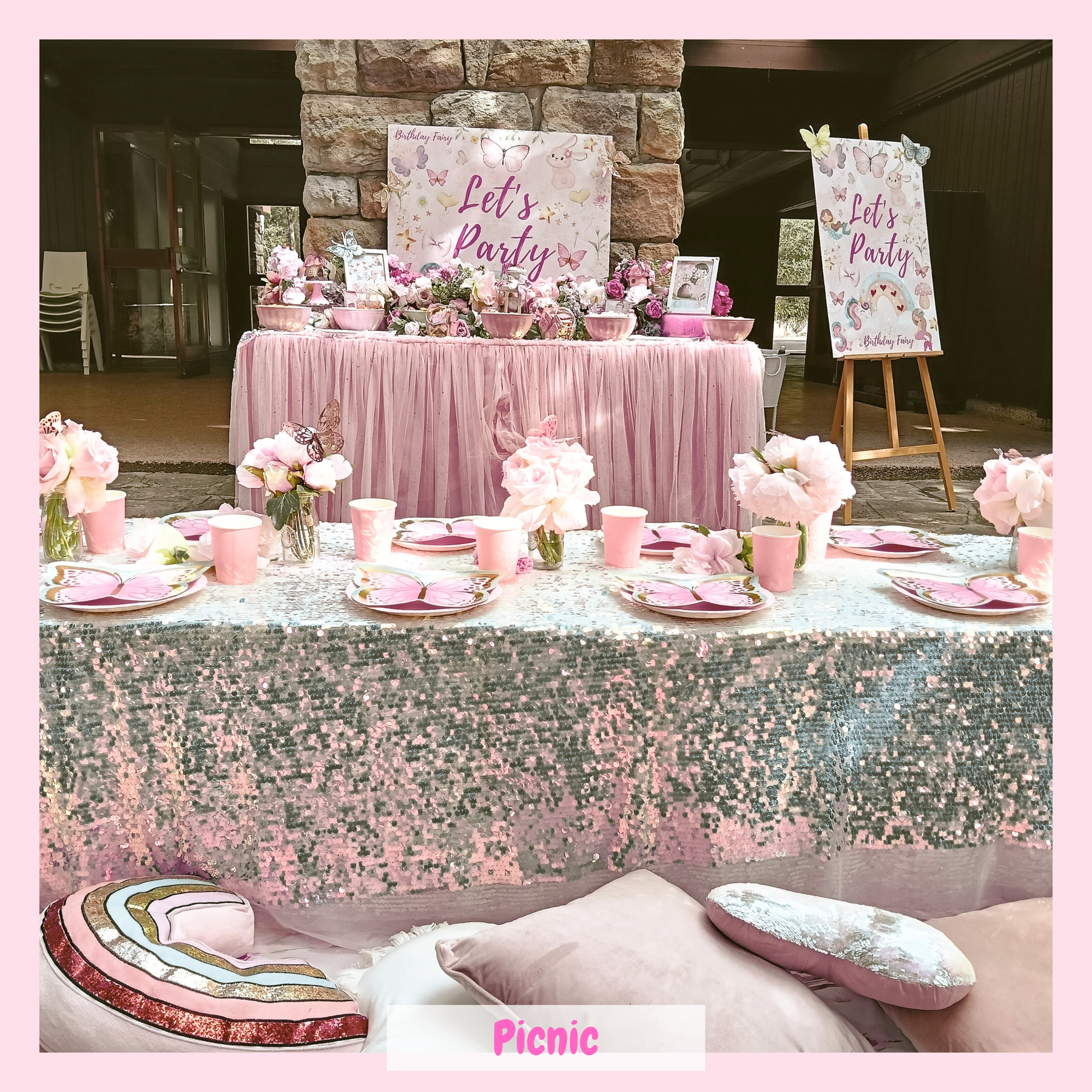 • Our picnic and high tea include a table & pillows or table & chairs for the children to sit at