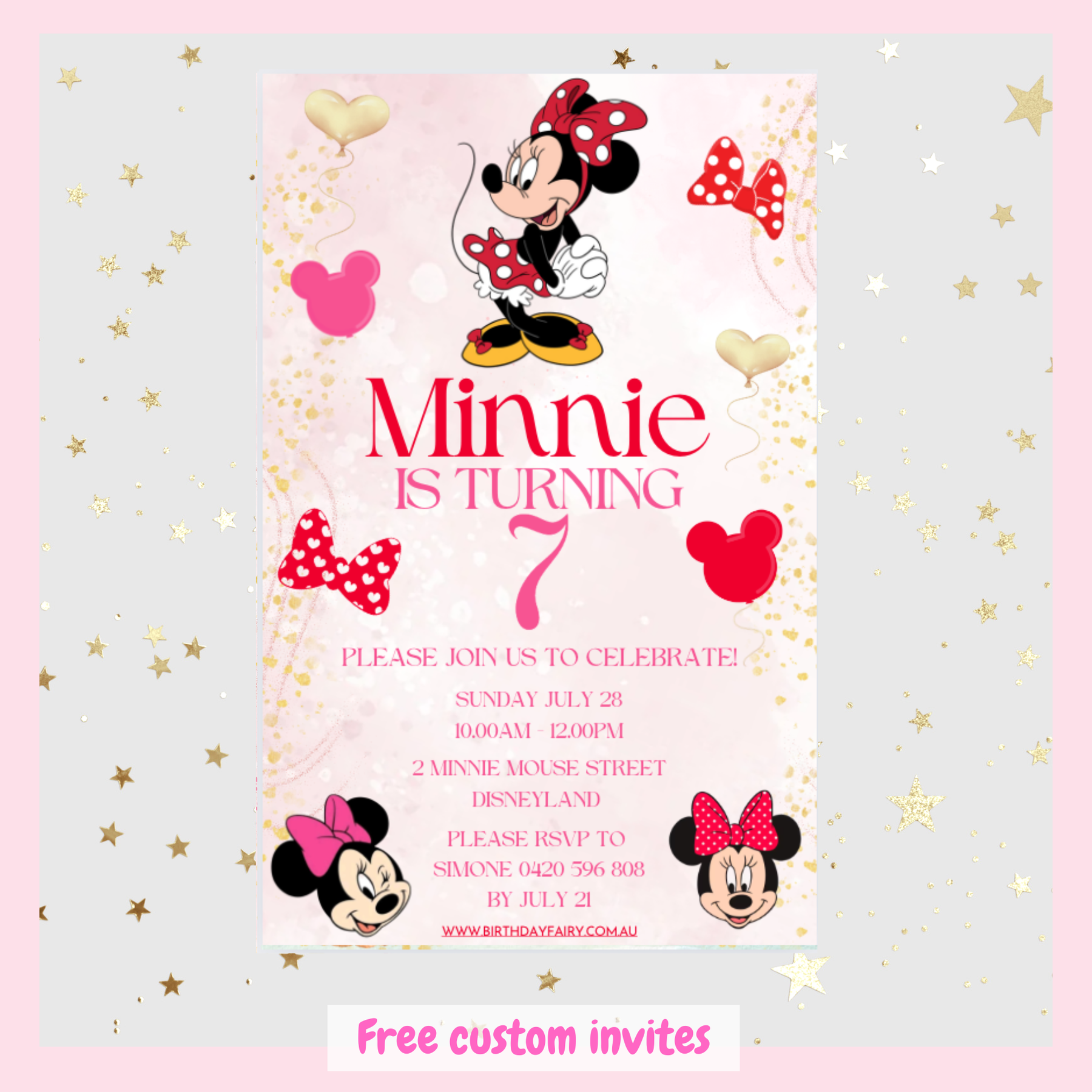 - Customised Minnie Mouse themed invites which you can print, email or text to your guests