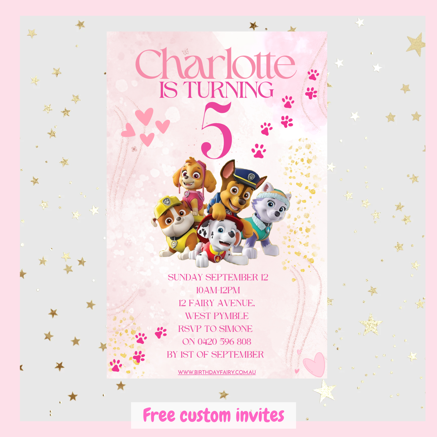 - Customised Paw Patrol themed invites which you can print, email or text to your guests