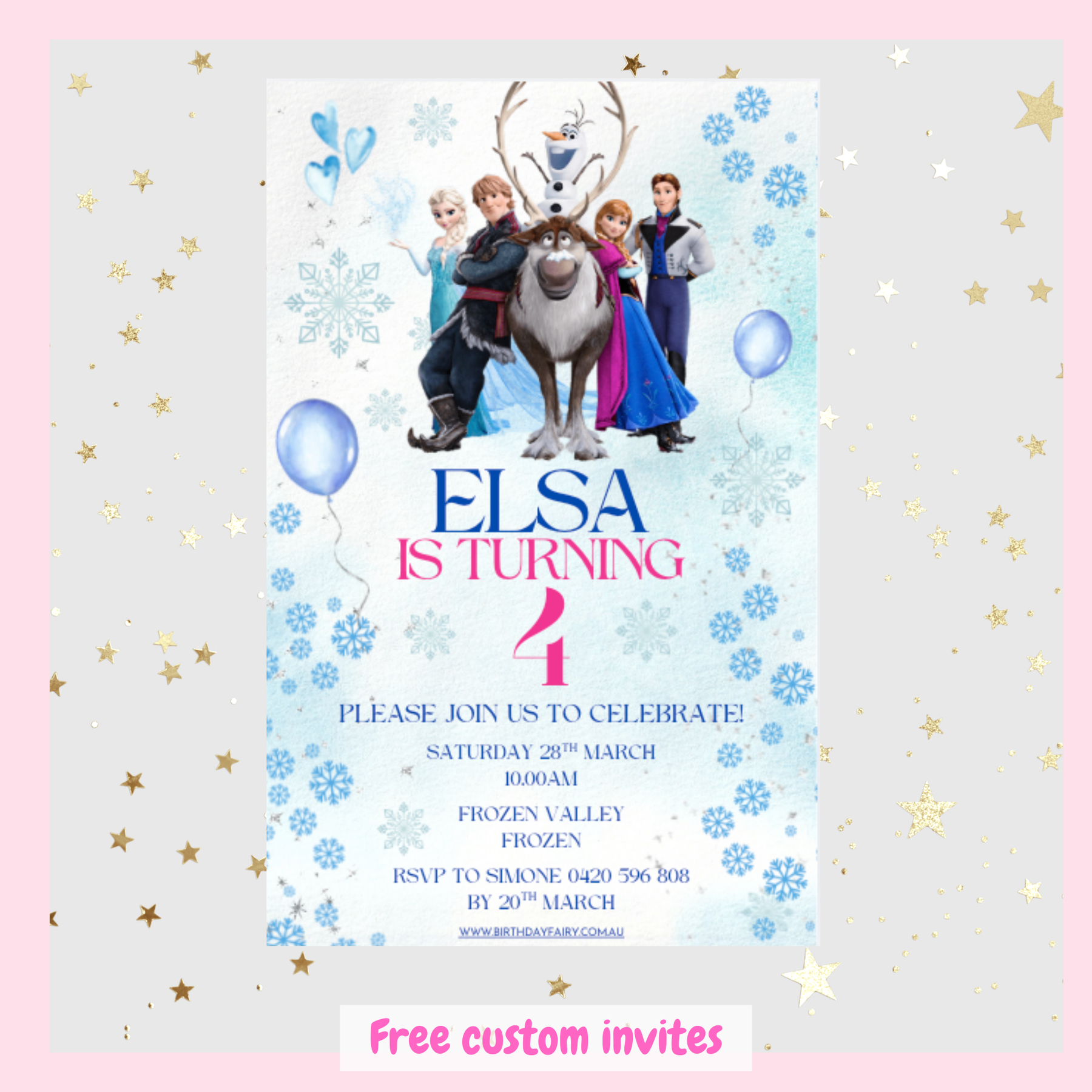 - Customised Frozen themed invites which you can print, email or text to your guests