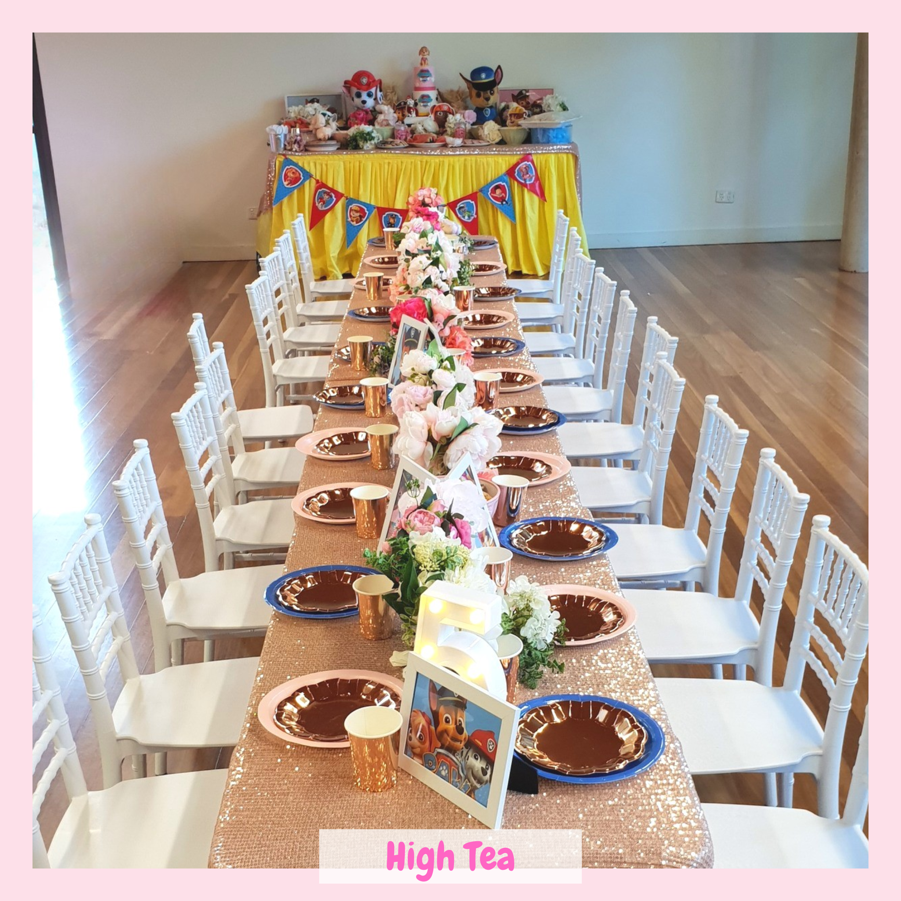 • Our picnic and high tea include a table & pillows or table & chairs for the children to sit at