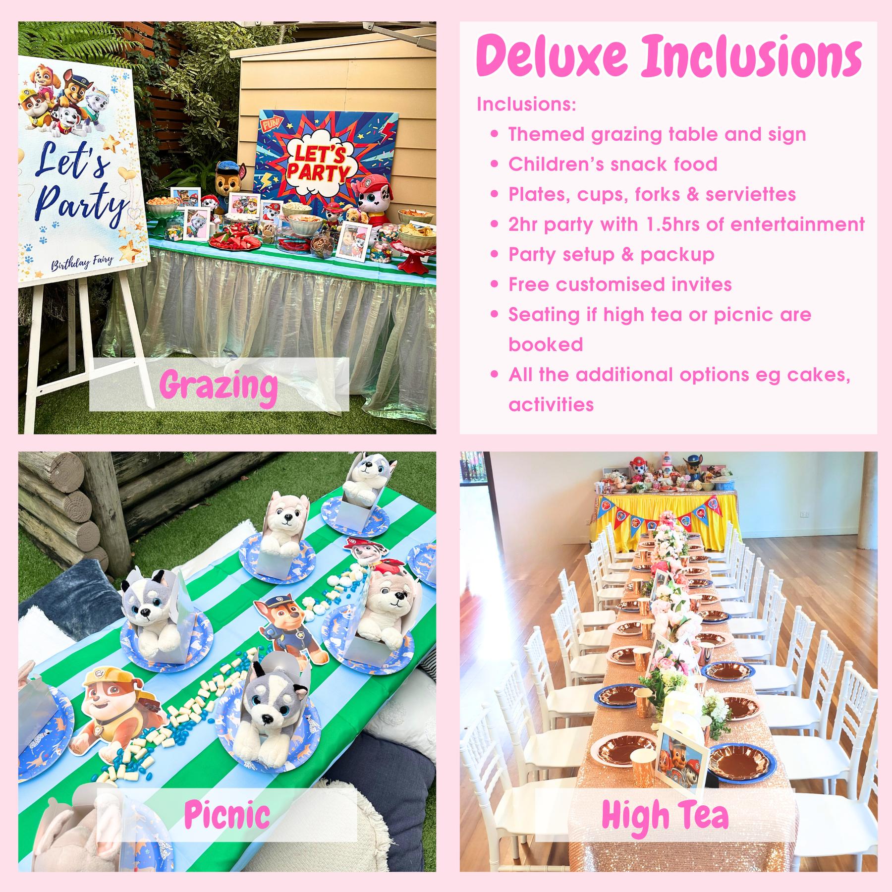 • Customised invitations in your party theme