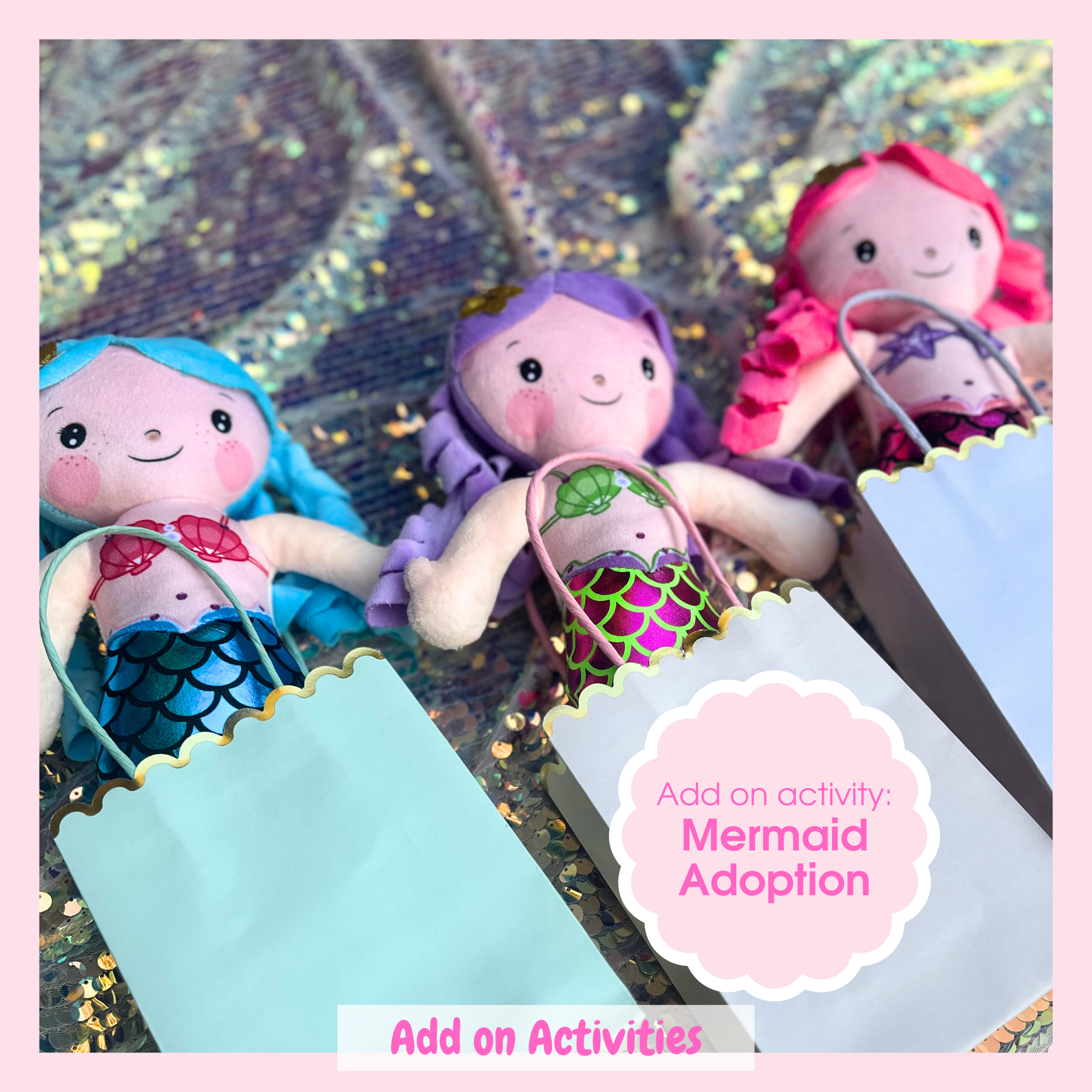 Our mermaid adoption kit is the perfect add on for your mermaid / under the sea party.