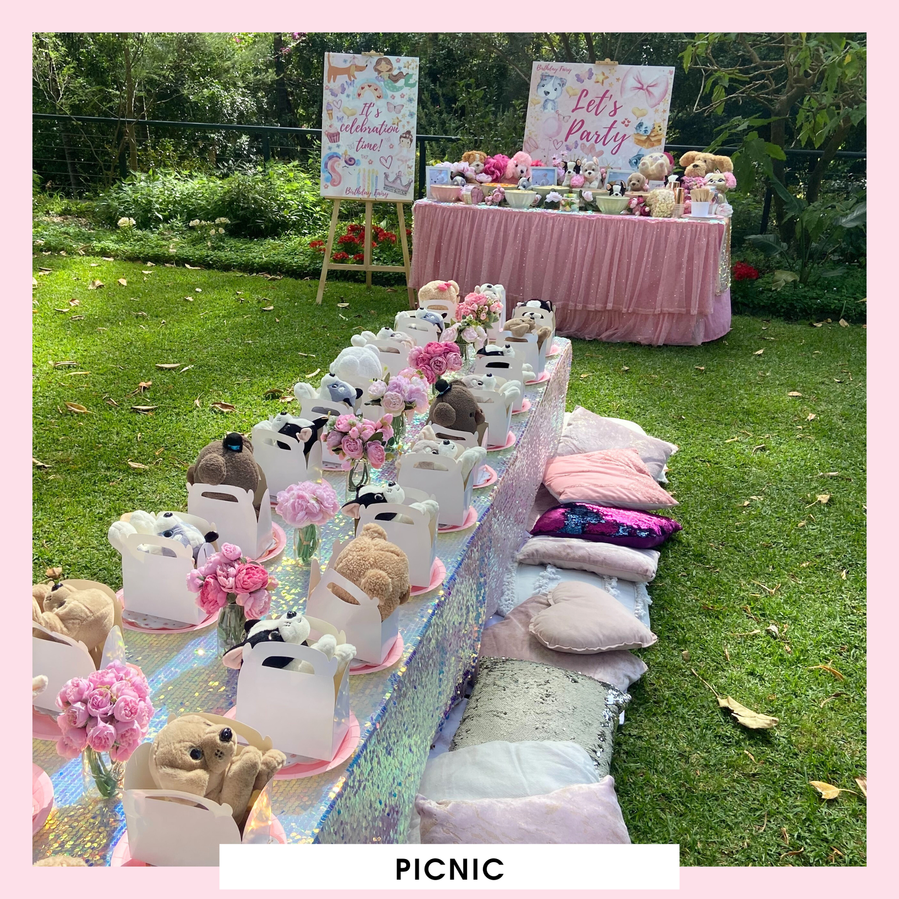 • Our picnic and high tea include a table & pillows or table & chairs for the children to sit at