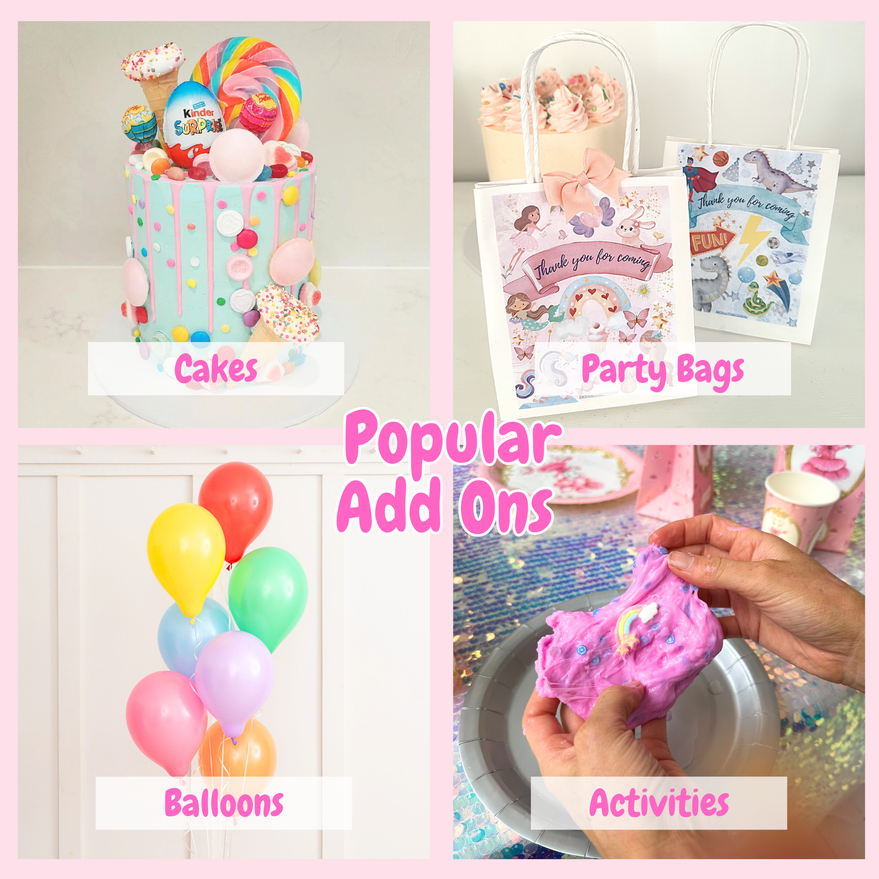 One entertainer is recommended for up to 15 children. Over 16 children requires a second entertainer which is an additional $120 for 1hr or $180 for 1.5hrs.